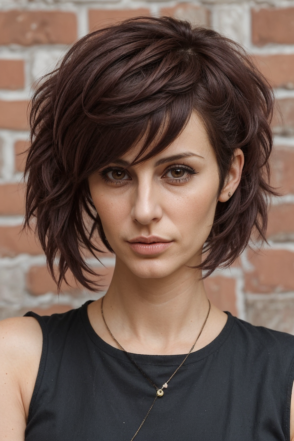 Ein Pixie mit abgehackten Stufen bietet eine mutige und moderne Interpretation der klassischen Kurzhaarfrisur. Dieser Stil zeichnet sich durch seine kantige Ausstrahlung aus und zeichnet sich durch Stufen mit scharfen, strukturierten Kanten aus, die einen dynamischen und mehrdimensionalen Look erzeugen. Die abgehackten Stufen verleihen dem Haar Bewegung und Volumen und sind somit perfekt für alle, die ihrer Frisur Struktur und Persönlichkeit verleihen möchten. Ob glatt und gepflegt oder zerzaust und ungemacht getragen, der Pixie mit abgehackten Stufen strahlt Selbstbewusstsein und Stil aus und ist daher eine beliebte Wahl unter Trendsettern, die einen modernen und aussagekräftigen Haarschnitt suchen.
