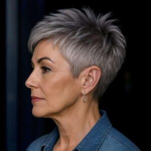 Verleihen Sie Ihrem grauen Haar mit speziell entworfenen kurzen Stufenschnitten mehr Fülle und Dynamik.