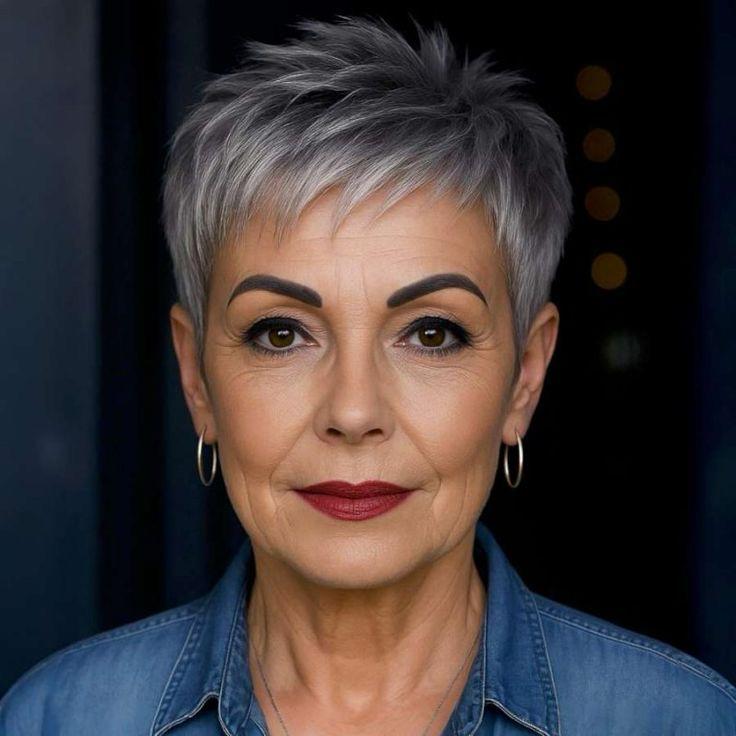 Verleihen Sie Ihrem grauen Haar mit speziell entworfenen kurzen Stufenschnitten mehr Fülle und Dynamik.