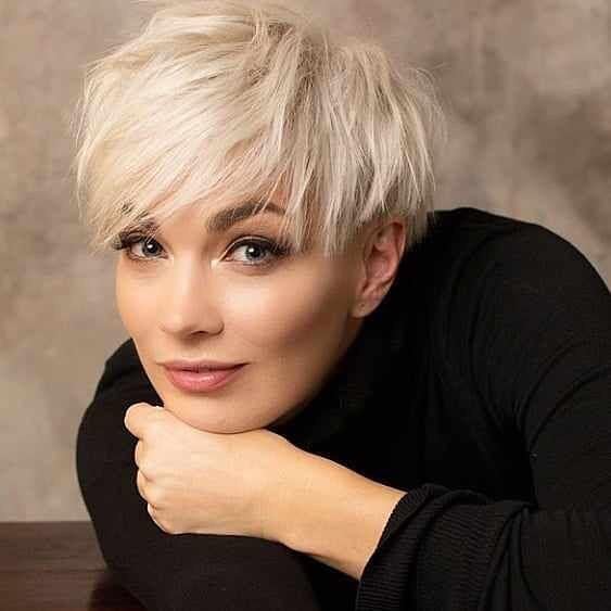 Edgy Beige mit kurzem Rücken und langen Pony – strukturierter Kurzhaarschnitt