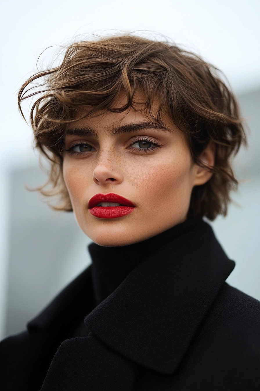 Für ein eckiges Gesicht empfehlen sich weichere Pixie-Schnitte mit sanften Konturen. Stufenschnitte oder Frisuren mit weichem, geradem Pony können die Gesichtslinien weicher machen und für ein harmonischeres Gesamtbild sorgen.
