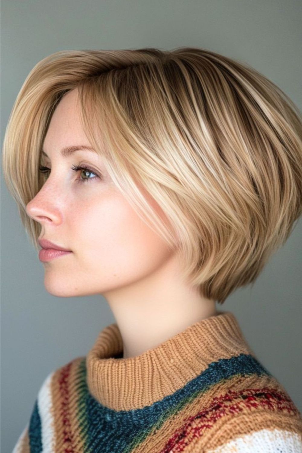 Die Stufen bleiben sanft und lassen Fülle, wo das Haar Unterstützung braucht.