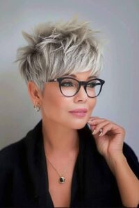 Gerade bei kurzen Frisuren kommt die Brille besonders gut zur Geltung, da sie nicht von langen Haaren verdeckt wird. Das Ergebnis ist ein aufgeräumter, eleganter und zugleich trendiger Gesamtlook, der sowohl im Alltag als auch im beruflichen Umfeld überzeugt.
