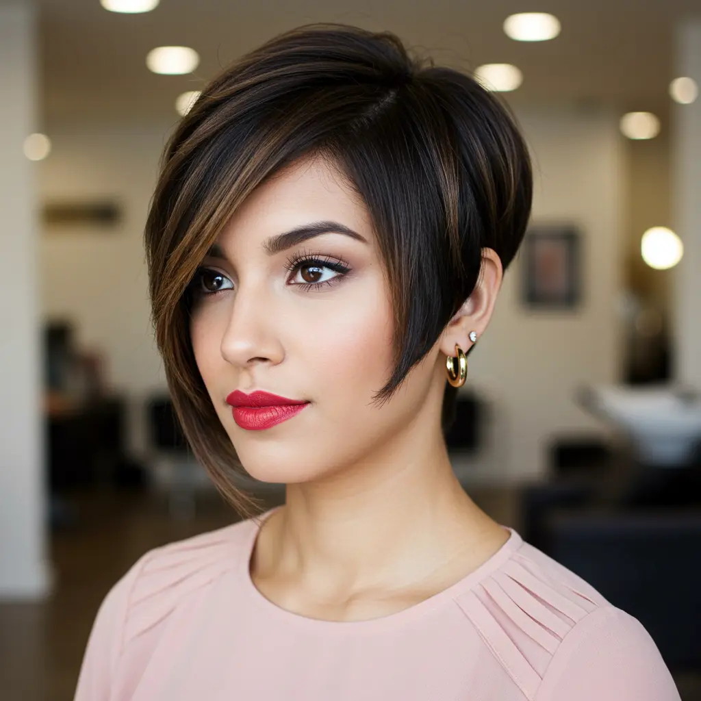 Diese längere asymmetrische Variante schließt die Lücke zwischen Pixie- und Bob-Schnitt und bietet mehr Styling-Vielfalt, ohne die Vorteile des Pixie-Schnitts zu beeinträchtigen. Die ungleichmäßigen Längen sorgen für ein interessantes und modernes Aussehen, während die etwas längere Länge mehr Styling-Optionen für besondere Anlässe oder das professionelle Umfeld bietet.