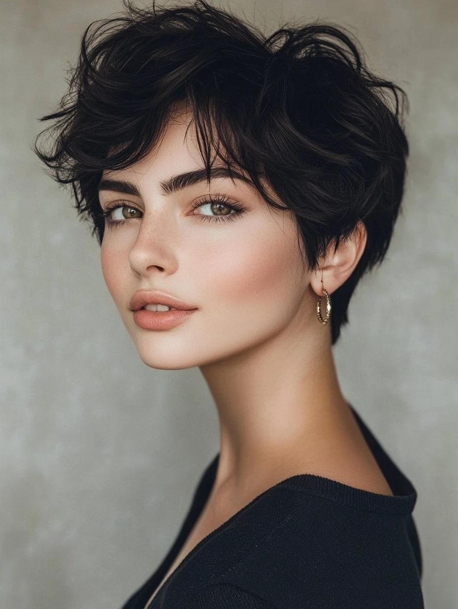 Ein längerer Pixie-Schnitt ist eine weitere fantastische Option für dickes Haar. Diese Variante bietet etwas mehr Länge am Oberkopf, während die Seiten und der Hinterkopf kürzer bleiben, was vielseitige Styling-Möglichkeiten ermöglicht. Das längere Oberkopf-Haar kann gestylt werden, um mehr Höhe zu verleihen, Wellen zu erzeugen oder für einen glatten, modernen Look nach hinten gekämmt zu werden. Der Kontrast zwischen den kürzeren Seiten und dem längeren Oberkopf verleiht dem Schnitt eine dynamische Note und macht ihn perfekt für alle, die sich etwas Vielseitigkeit wünschen.