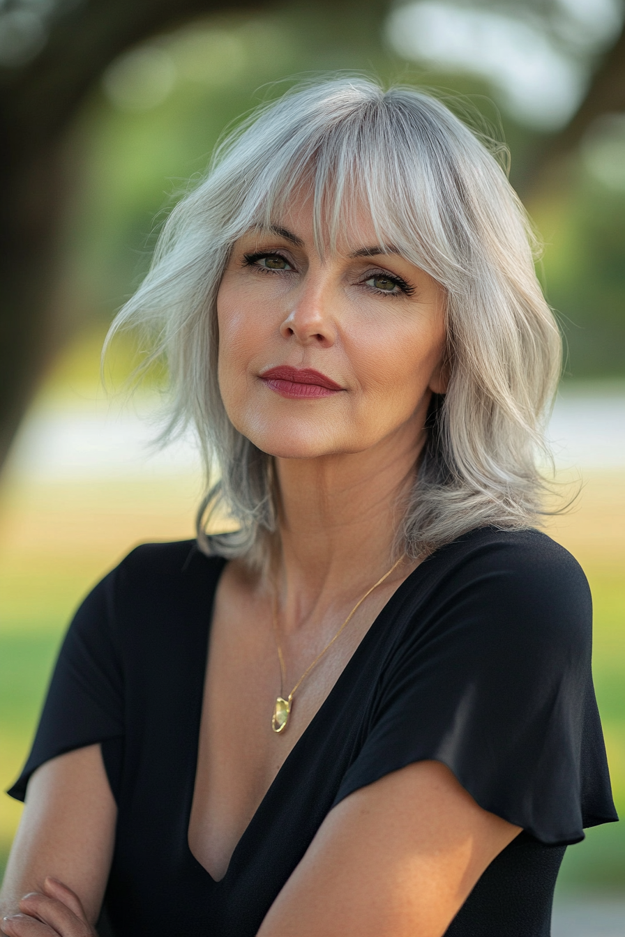 Ein seitlicher Pony ist eine tolle Möglichkeit, Ihre Frisur zu modernisieren, ohne drastische Veränderungen vornehmen zu müssen. Er umrahmt das Gesicht wunderschön und kann Fältchen oder feine Linien auf der Stirn mildern. Ein seitlicher Pony verleiht jeder Frisur einen jugendlichen Touch, egal ob Sie Ihr Haar kurz, mittellang oder lang tragen. Er ist einfach zu stylen und lässt sich nahtlos in das restliche Haar integrieren, um einen natürlichen Look zu erzielen.