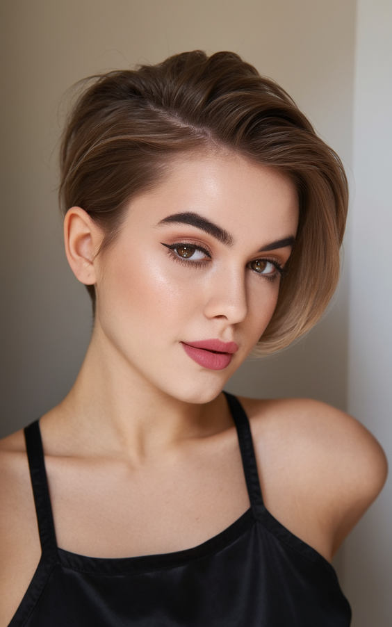 Unter den Pixie-Haarschnitten für Frauen – Feminine Ideen für den Sommer 2026 – ist dieser ideal für formelle Anlässe und den selbstbewussten Alltag.