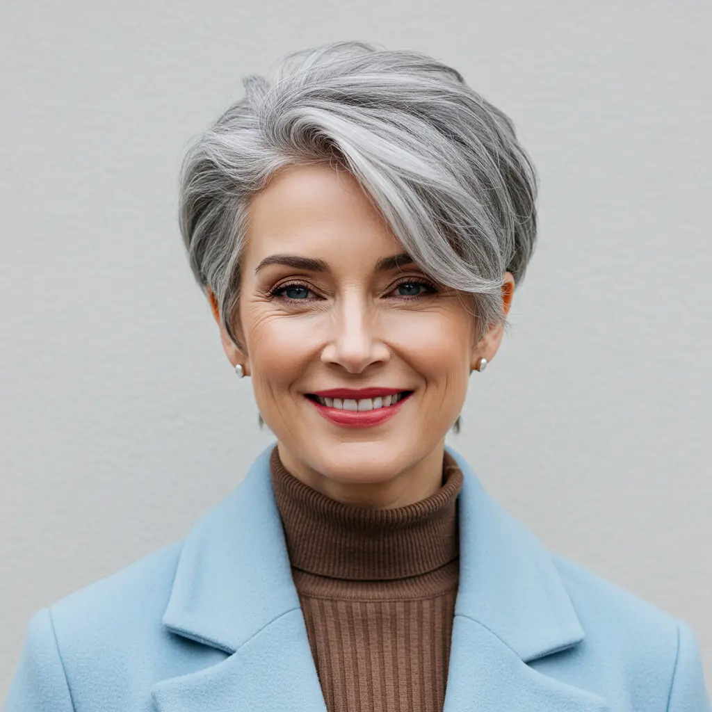 Diese moderne Interpretation des Pixie-Schnitts zeichnet sich durch einen dramatischen Kontrast zwischen dem längeren Oberkopf und den kurz geschnittenen Seiten aus. Die längere Oberpartie bietet vielfältige Stylingmöglichkeiten und behält gleichzeitig die Vorteile von kurzem Haar. Die Seiten werden kurz geschnitten, oft mit einer Haarschneidemaschine, wodurch ein klarer, maßgeschneiderter Look entsteht, der die längere Oberpartie betont. Dieser Style kann glatt und elegant für formelle Anlässe oder zerzaust und strukturiert für einen lässigeren, kantigeren Look getragen werden. Der Längenkontrast sorgt für optische Akzente und ermöglicht verschiedene Styling-Optionen.
