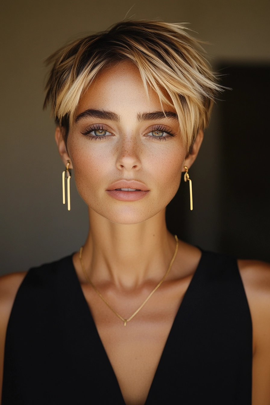 Außerdem ist es wichtig, regelmäßige Haarschnitte zu vereinbaren. Pixie-Cuts können schnell ungepflegt wirken, wenn sie nicht regelmäßig gepflegt werden. Es ist ein weit verbreiteter Irrtum, dass Kurzhaarschnitte weniger Pflege benötigen. Tatsächlich sollten Frauen mit Pixie-Cut alle vier bis sechs Wochen zum Friseur gehen, um Form und Style zu erhalten. So sieht ihr Haar immer frisch und gesund aus.