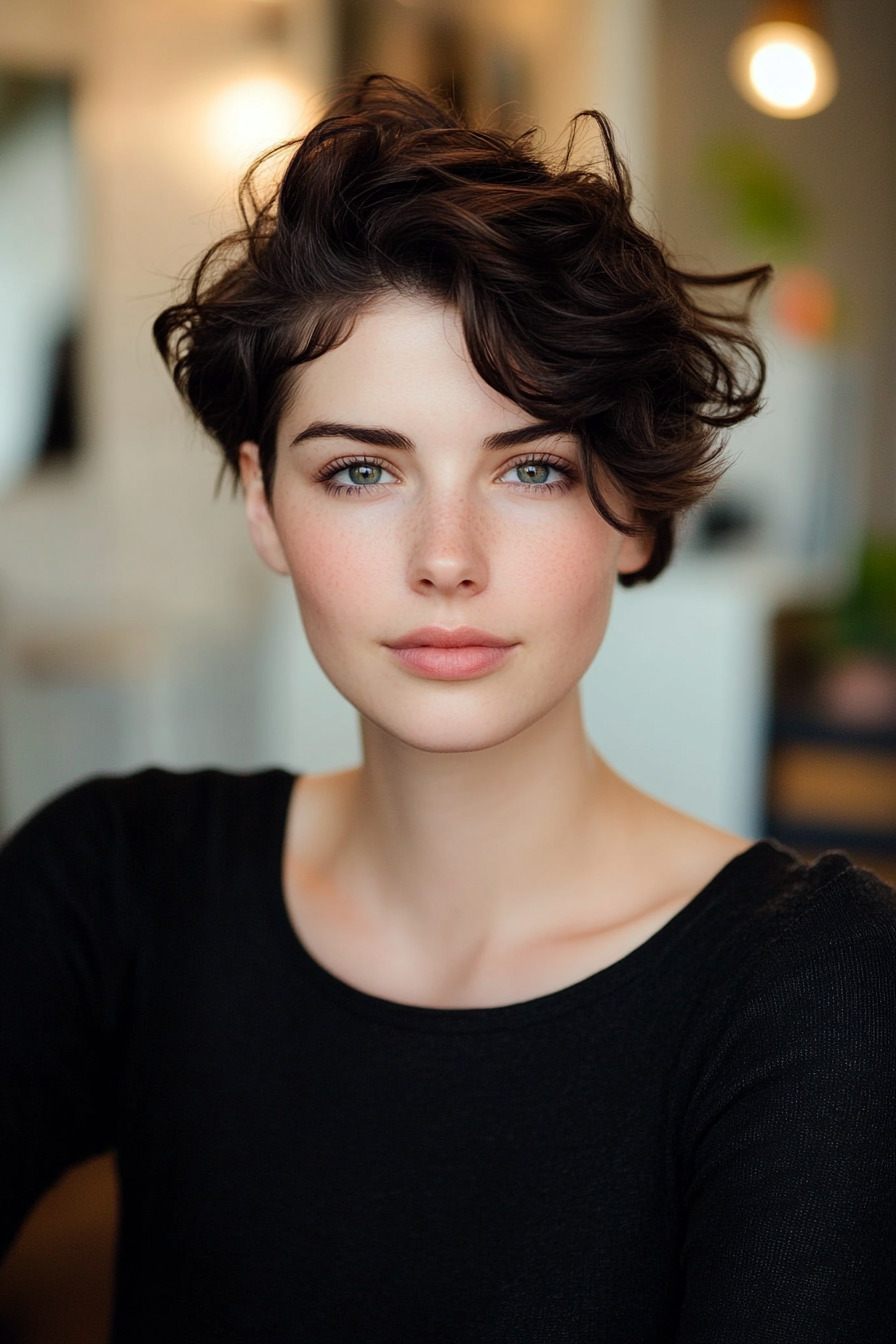 Für alle mit feinem Haar, die sich etwas Bewegung wünschen, ist ein gewellter Pixie-Schnitt die richtige Wahl. Sanfte Wellen verleihen dem Haar Struktur und Volumen und lassen es luftig und voluminös wirken. Dieser Style lässt sich mit Meersalzspray oder einem Lockenstab perfektionieren und ist perfekt für den Alltag und besondere Anlässe.