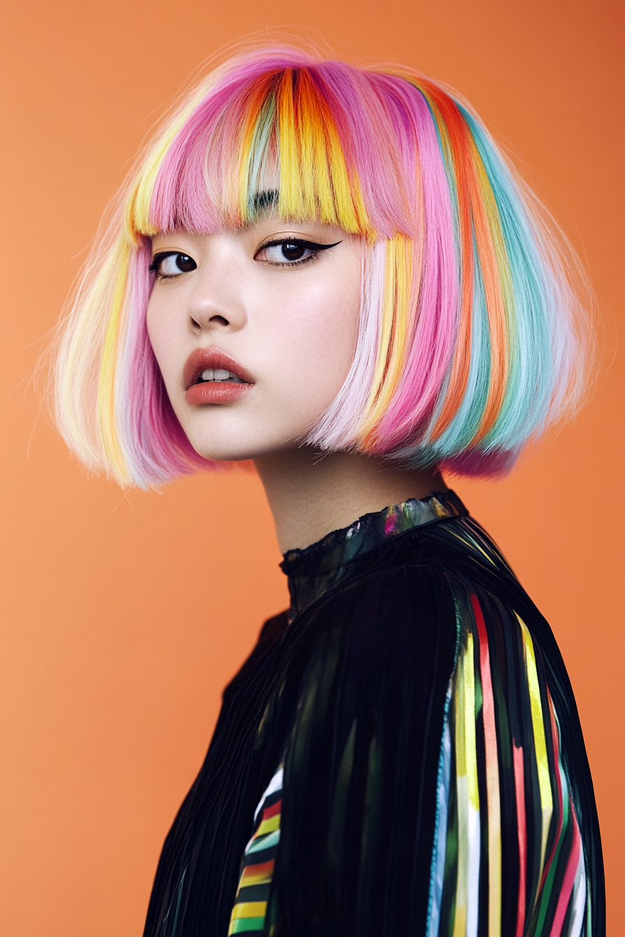 Für Mutige und Abenteuerlustige ist ein bunter Bob ein starkes Statement. Von Pastell bis hin zu leuchtenden Farben – diese Frisur ermöglicht kreativen Ausdruck und Individualität. Sie können sich für eine Volltonfarbe oder dezente Highlights entscheiden, die Ihre Basis ergänzen und Ihren Bob zu einem wahren Kunstwerk machen.