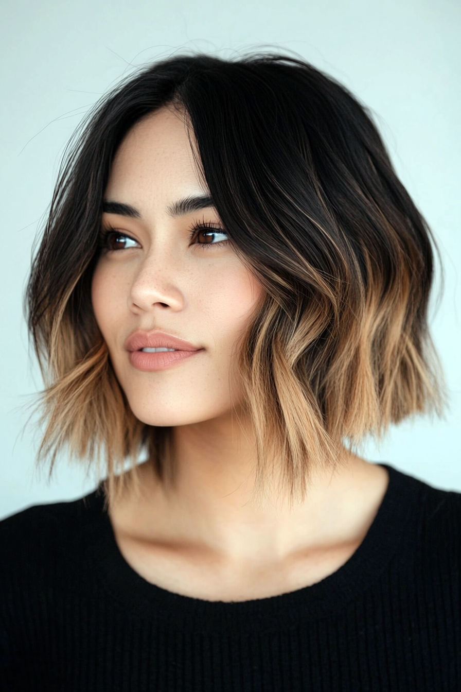 Ein Ombre Bob ist eine moderne Variante des traditionellen Bobs mit einem Farbverlauf vom dunklen Ansatz bis zu den helleren Spitzen. Diese Frisur verleiht Ihrem Haar nicht nur mehr Tiefe, sondern ermöglicht auch ein spielerisches Experimentieren mit Farben. Die kontrastierenden Farbtöne unterstreichen Ihren Stil und Ihre Persönlichkeit.