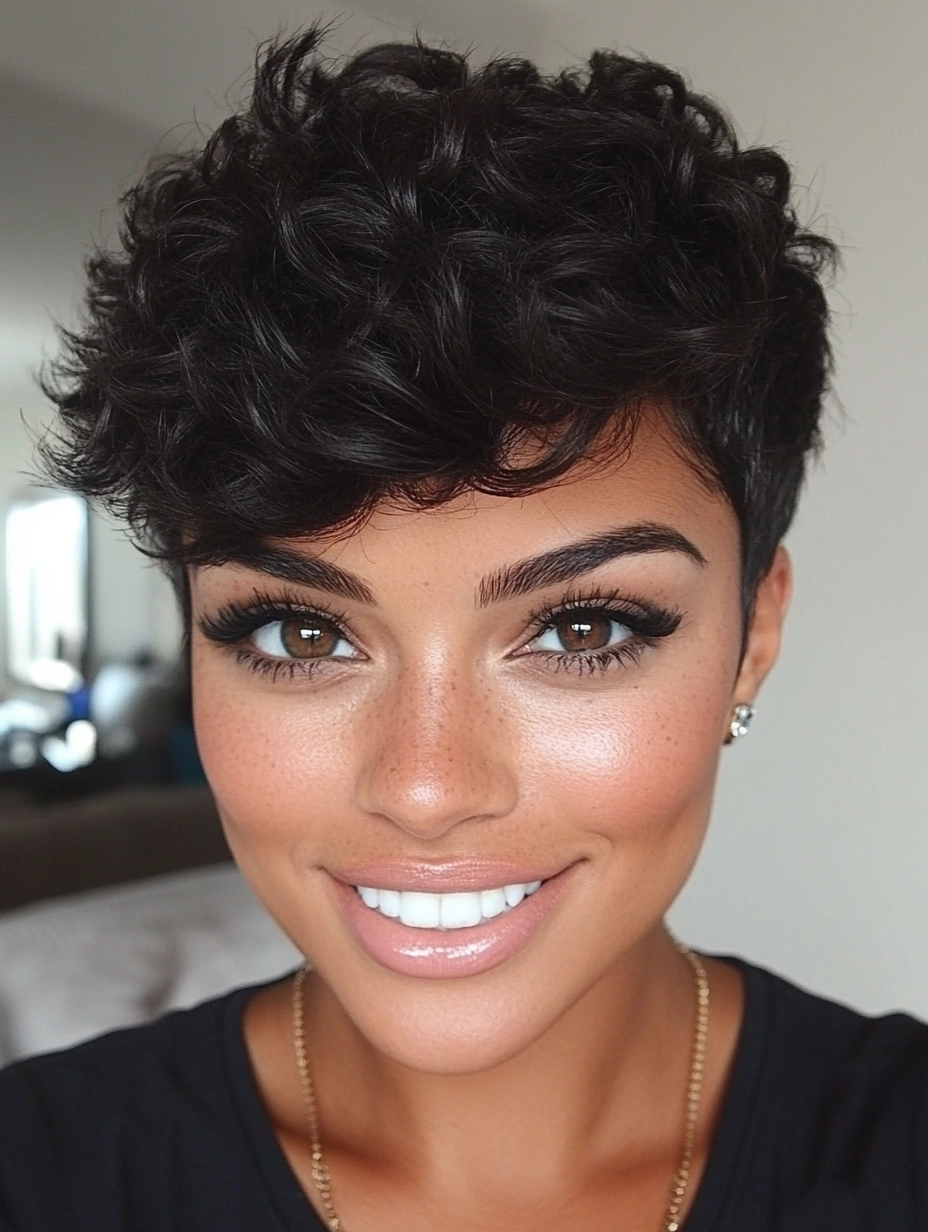 Andererseits gibt es den „Pixie Cut“, einen mehrstufigen Schnitt. Die letzte Partie ist lang, die Partien oben werden gelockt. Diese Variante des Pixie Cuts ist ideal für alle, die Schwierigkeiten beim Locken haben. Der integrierte Haarschneider am Oberkopf definiert die Form der Partie und verstärkt das Haarvolumen. Wenn Sie sich für einen Pixie Cut entscheiden, sollten Sie einen Lockenstab in Rottönen in Betracht ziehen.