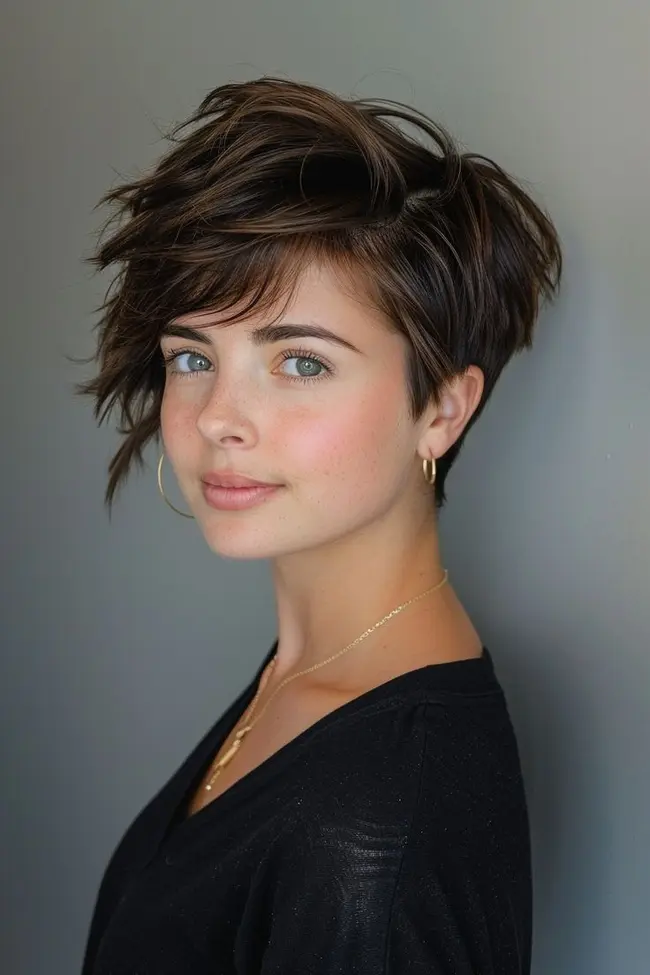 Der Pixie-Schnitt ist ein weiterer beliebter Stil. Er bietet vielfältige Styling-Optionen und viele Möglichkeiten, feinem Haar mehr Volumen zu verleihen. Die Kombination aus kurzen Strähnen an den Seiten und längeren Strähnen oben sorgt für einen lässigen und dennoch eleganten Look. Ein leichtes Wachs oder eine Pomade betont den Pony und betont seine Textur. Mit diesen Produkten können Sie den Pixie-Schnitt individuell an den Anlass oder Ihren persönlichen Stil anpassen.