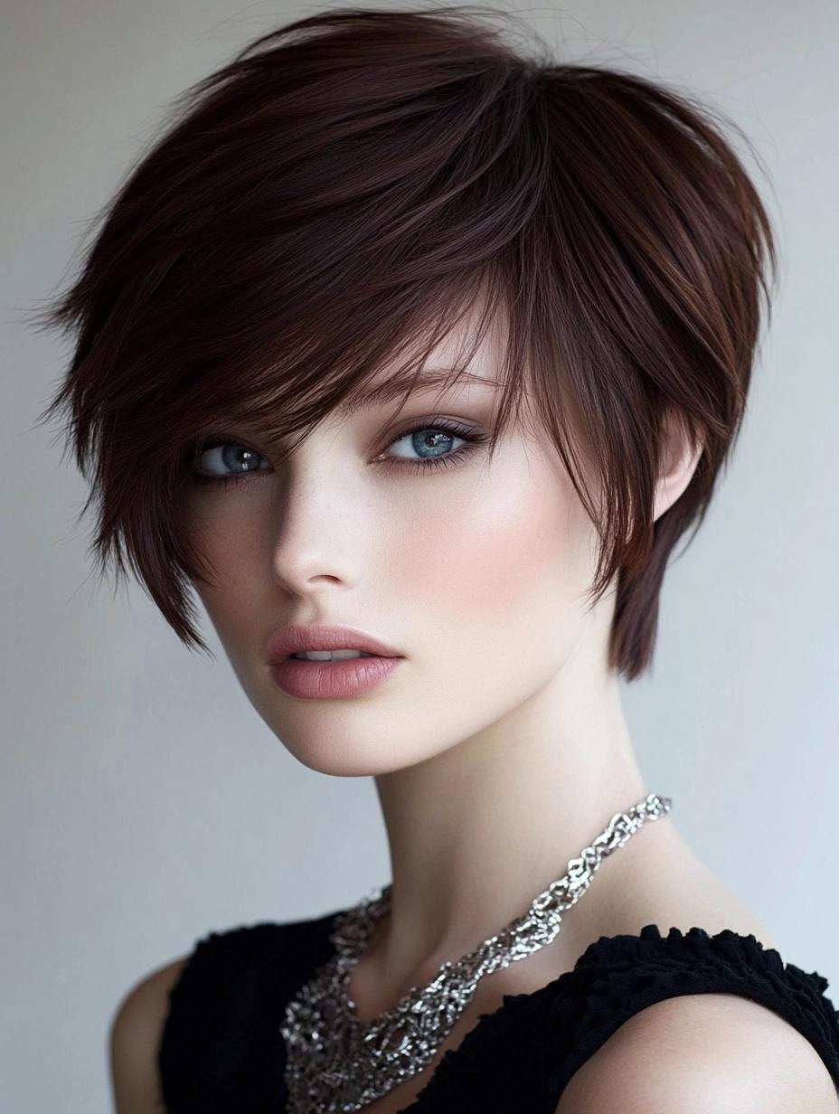 Eleganter Mahagonibrauner Kurzhaarschnitt